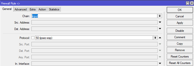 - В поле Src. Address указываем локальную сеть на земле, к которой подключены узлы за микротиком