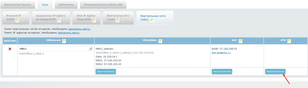 6. создаем VPN подключение. Нужно нажать на кнопку «Редактирование» в колонке VPN на этой же вкладке CP