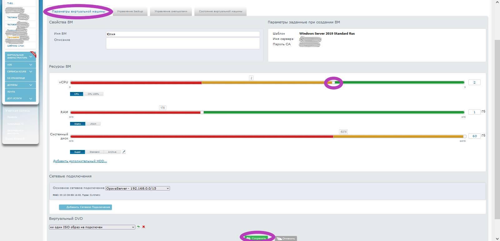 ВАЖНО: Для применения параметров на виртуальную машину понадобится её перезагрузка.
