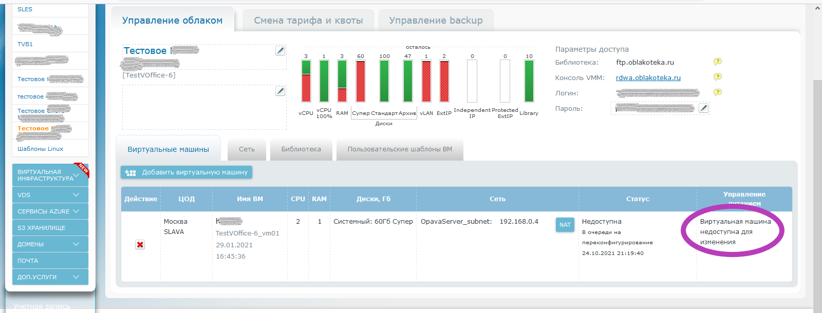 Виртуальная машина будет недоступна для изменения 5-10минут.