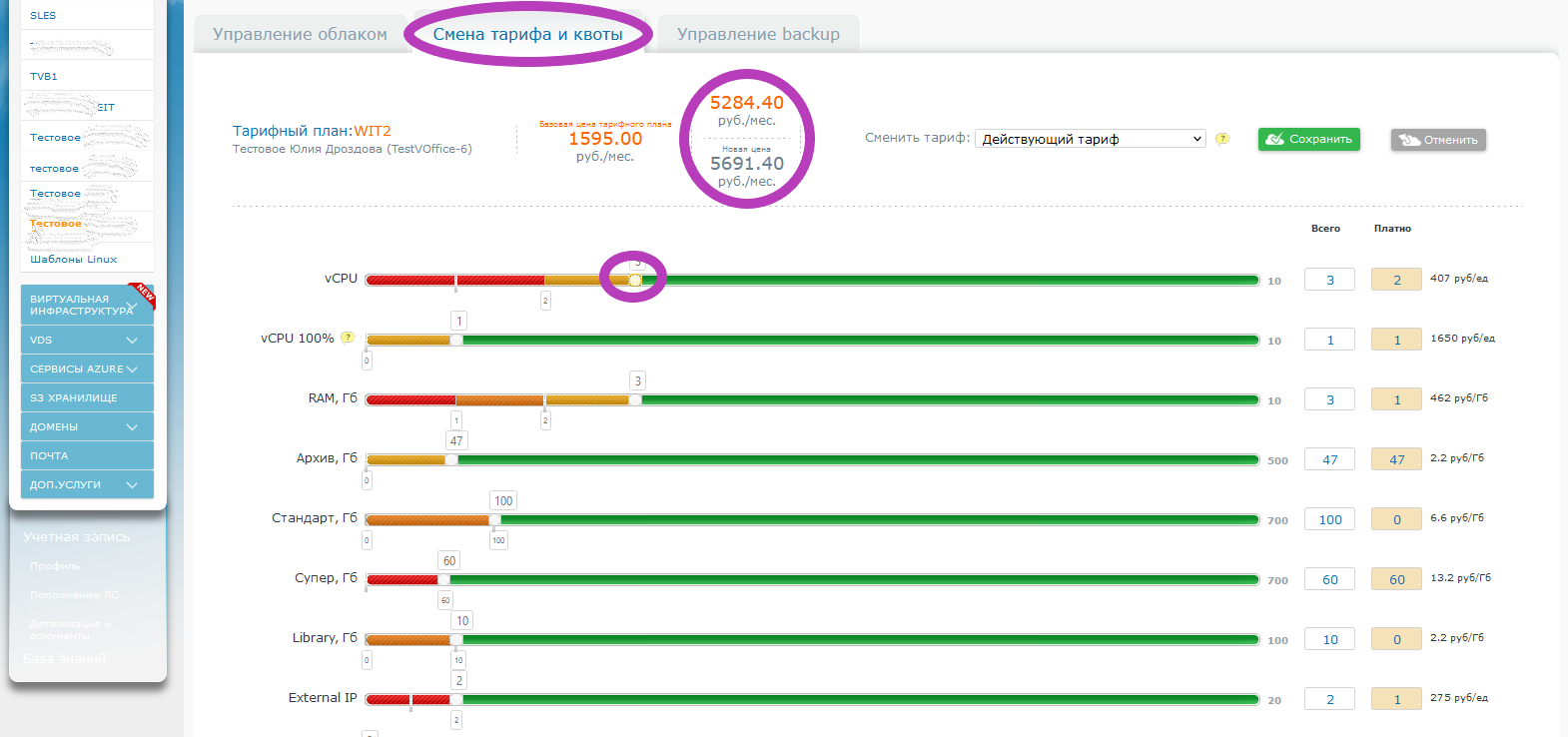 - цену тарифного плана с дополнительными получаемыми ресурсами;