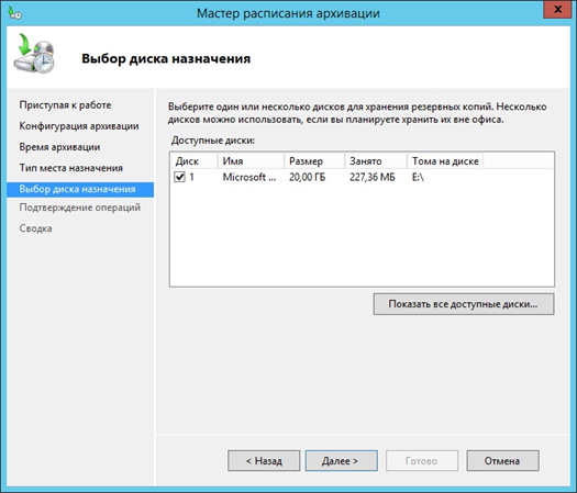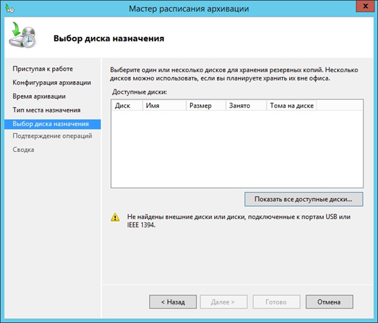 Выберите диск для записи архива данных. Для добавления целевого диска нужно нажать «Показать все доступные диски»