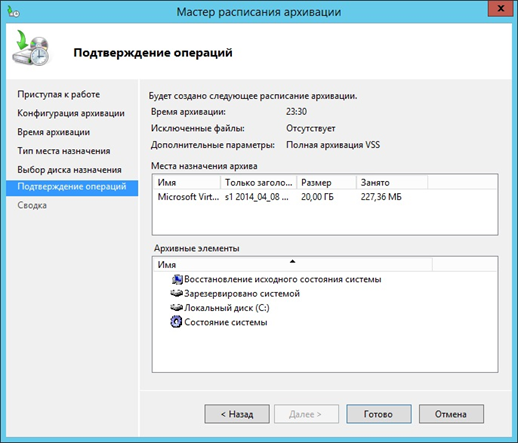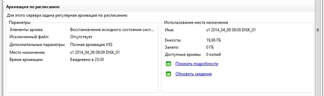 После того, как настройка будет выполнена, в панели системы архивации данных появится запись о расписании архивации