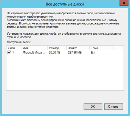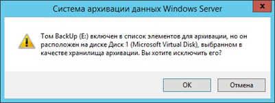 Если в сервере один диск разбит на тома, то при попытке архивации всего сервера и назначении этого же диска в качестве целевого диска для хранения архивов, Вы получите сообщение об исключении этого диска из списка архивации