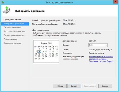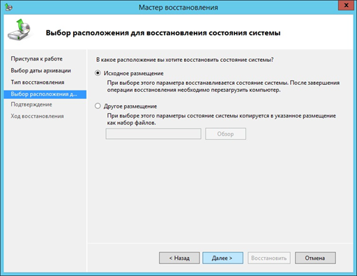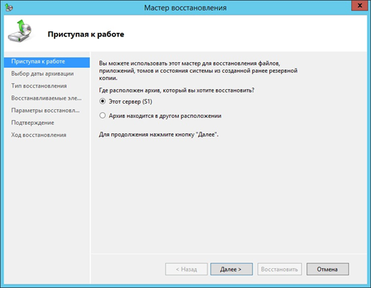 Для выполнения восстановления необходимо запустить мастер восстановления и указать, где располагается архив