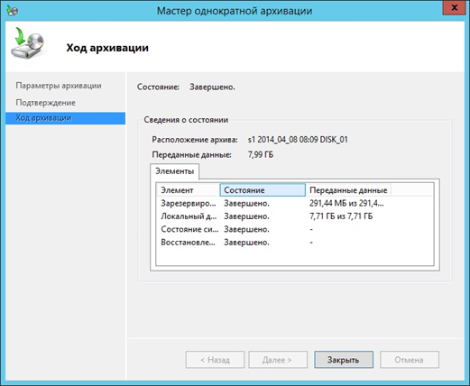 После завершения архивации мастер сообщит о результате выполнения задания.
