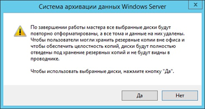 Далее будет предложено целевой диск подготовить к хранению архивов. Для продолжения нажмите «Да»