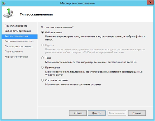 Здесь же можно увидеть какие данные можно восстановить из выбранной точки восстановления.