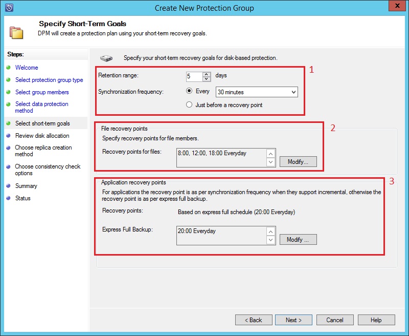Также для онлайн копирования можно настроить глубину архивации (за какой промежуток времени будут хранится данные) и расписание синхронизации