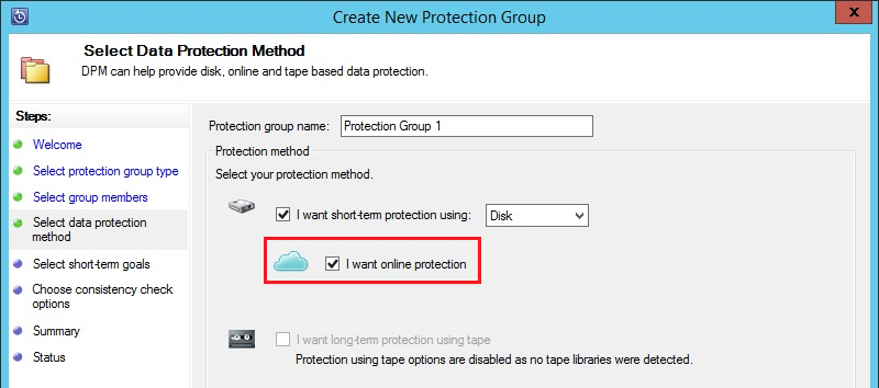 При выборе метода защиты нужно указать "Online protection". Следует заметить, что возможно одновременное использование и онлайн копирования, и копирования данных на локальный диск.