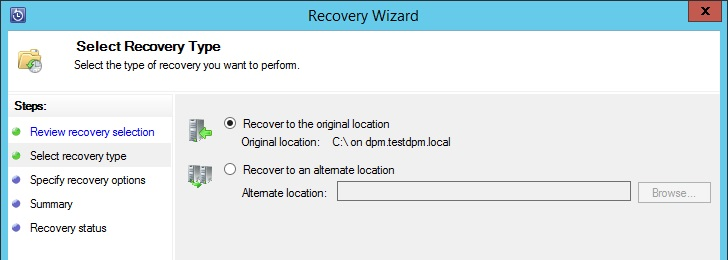 Выберите метод восстановления: в исходное расположение данных или в любое другое место