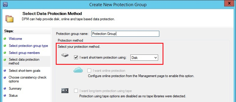 В разделе выбора метода защиты (Protection method) выберите "Disk"