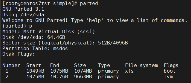 Видно, что размер диска якобы 64 GB, а оба раздела в сумме явно дают больше 10-и GB. Происходит это из-за разночтений правил подсчёта данных/информации (1 килобайт = 1000/1024 байт)