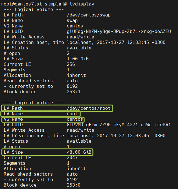 # lvextend -l +100%FREE /dev/centos/root6. Последний шаг, актуальный для версии