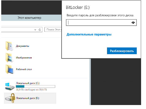 Для разблокировки дополнительных дисков нужно в проводнике перейти в зашифрованный диск и на запрос пароля ввести его