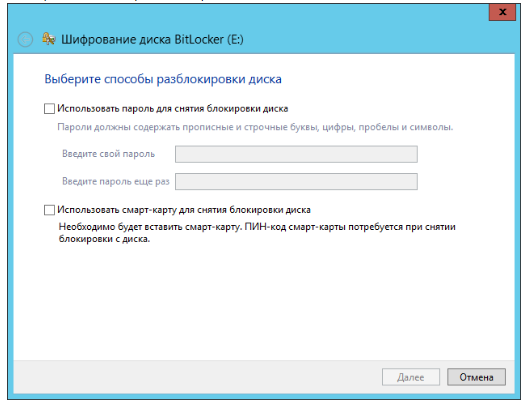 Выберите способ разблокировки диска