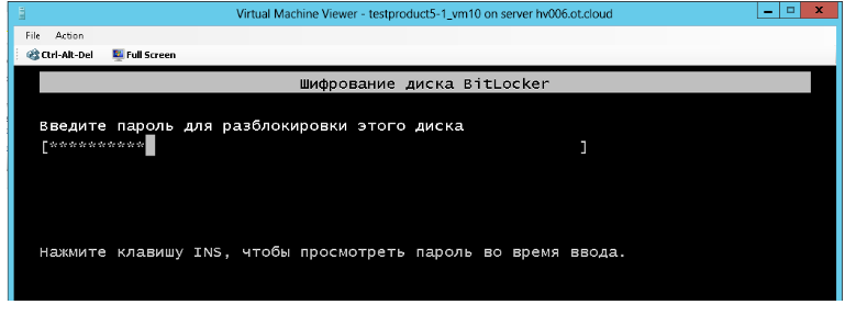 Для разблокировки основного диска C: при запуске ВМ нужно ввести пароль
