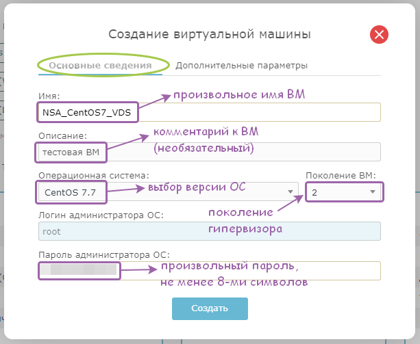 Для создания ВМ (виртуальной машины) в VDS: