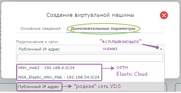 1) подключить сеть из Elastic Cloud (выбираем из уже созданных)