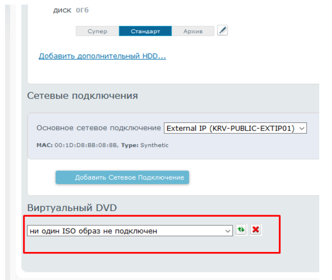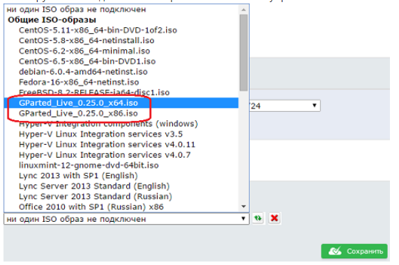 Монтируем необходимый нам образ в ВМ из панели управления облаком