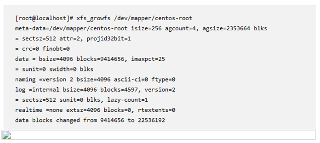 xfs_growfs /dev/mapper/centos-root