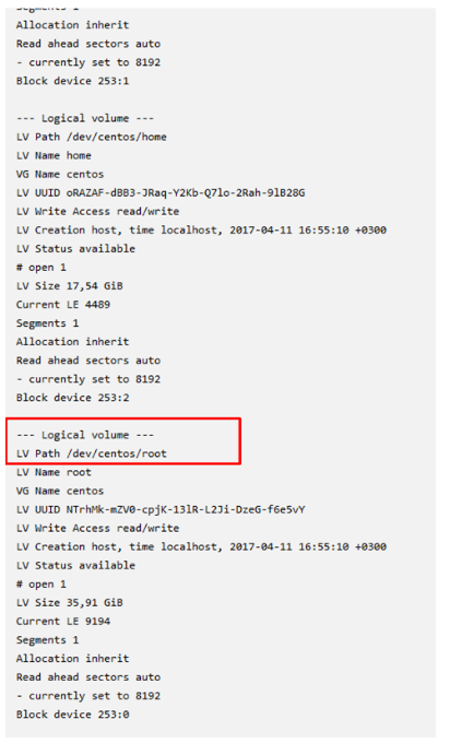 - Lvdisplay - ищем наш LVPath
