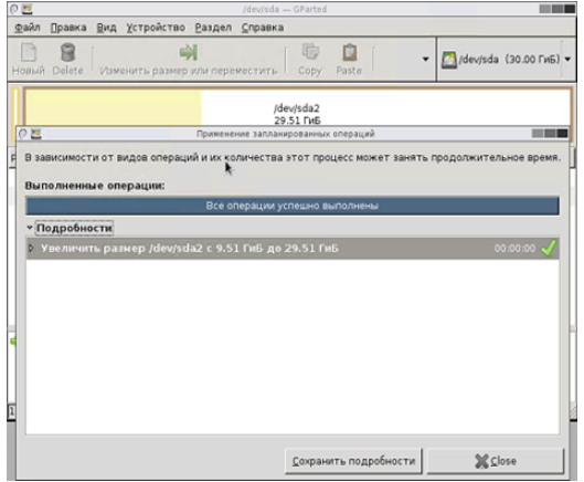 Видим, что целевой раздел расширен на все доступное пространство и неразмеченного места не осталось