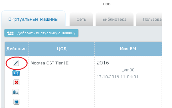 • Нажимаем на кнопку «Изменить» напротив необходимой ВМ: