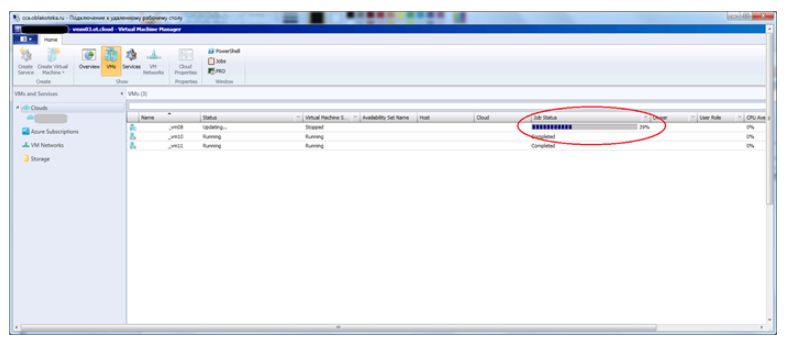 • Примечание: Вы можете отслеживать прогресс изменения типа диска в процентах, зайдя в консоль VMM (cca.oblakoteka.ru):