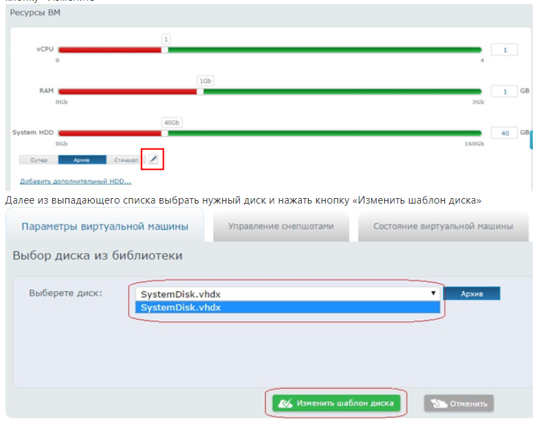 Замечание: На данный момент нельзя через портал заменять загрузочные диски для ВМ generation 2. В таких случаях Вам надо отправить письмо с запросом на support@oblakoteka.ru