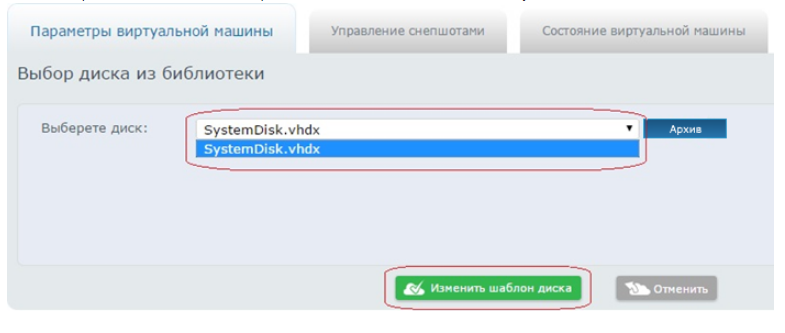 Замена рабочего диска ВМ на подгруженный в библиотеку