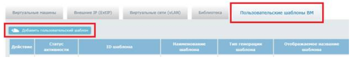 На странице «Управление облаком» необходимо перейти на закладку «Пользовательские шаблоны ВМ» и нажать кнопку «Добавить пользовательский шаблон»