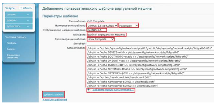 На странице «Добавление пользовательского шаблона виртуальной машины» заполните следующие поля: