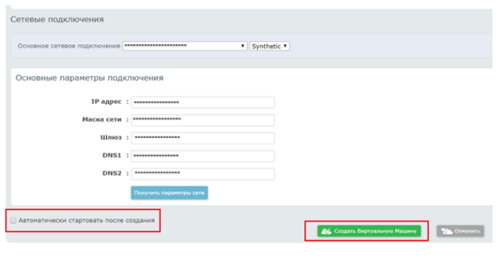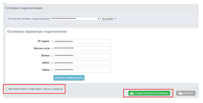 Далее в разделе «Сетевые подключения» выберете необходимое подключение и нажмите «Создать Виртуальную Машину».