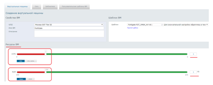 Важно: указанная конфигурация ресурсов необходимо для успешной активации лицензии VDOM в дальнейшем.