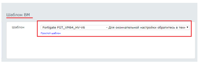 Для создания указанной ВМ, в СР выберете из списка общедоступных шаблонов, шаблон - «Fortigate FGT_VM64_HV-V6»