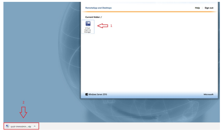 Важно: Для подключения к консоли VMM 2016 через опубликованное приложение, на локальном компьютере должна быть установлена ОС не ниже Windows 7 SP1 c установленным протоколом RDP версии 8.1.