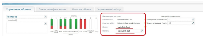 В данном окне необходимо ввести логин и пароль, который указан в панели управления на вкладке "Управление облаком":