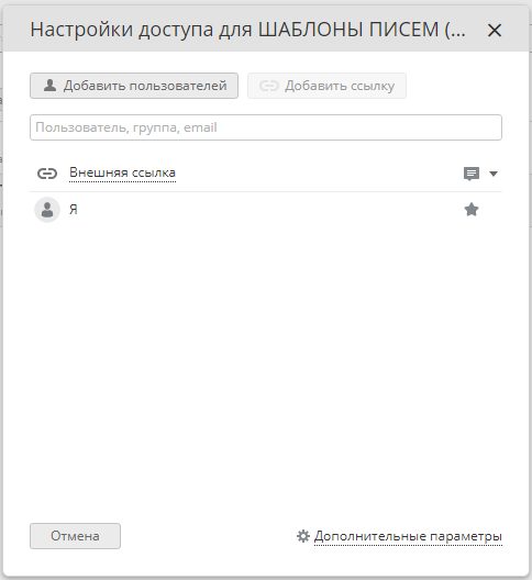 Доступ справа от его названия. В открывшемся окне 'Настройки совместного доступа' вы можете: