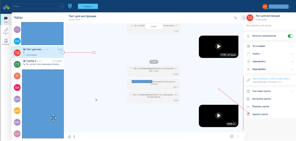 - Проконтролируйте, что у собеседника в списке чатов не отображается группа, которую вы удалили