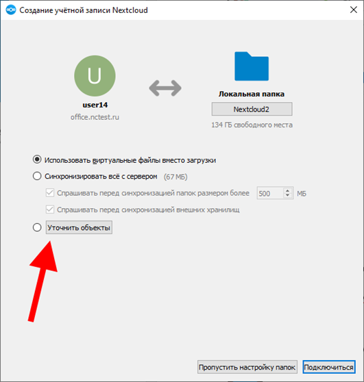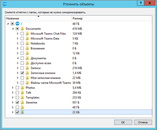4. Важно! Для синхронизации необходимо выбрать только нужные объекты/папки, иначе будут загружены все документы к которым имеется доступ.