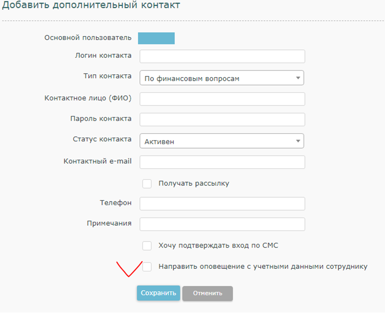 Для отправки оповещения с учетными данными сотруднику поставьте галку напротив данного параметра.