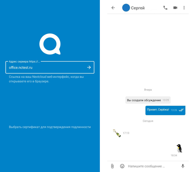 После запуска нужно выполнить Вход указав адрес сервера office.nctest.ru