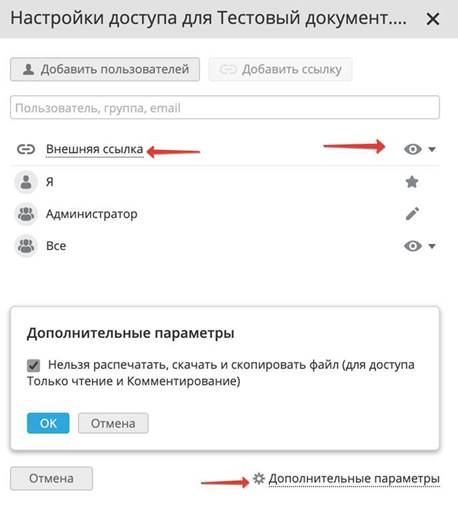 3. Перейдите в "Настройки доступа" документа